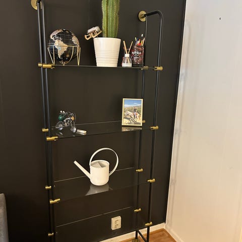 Robust känsla samtidigt som den är luftig tack vare hyllplanen i glas och den nätta designen.
