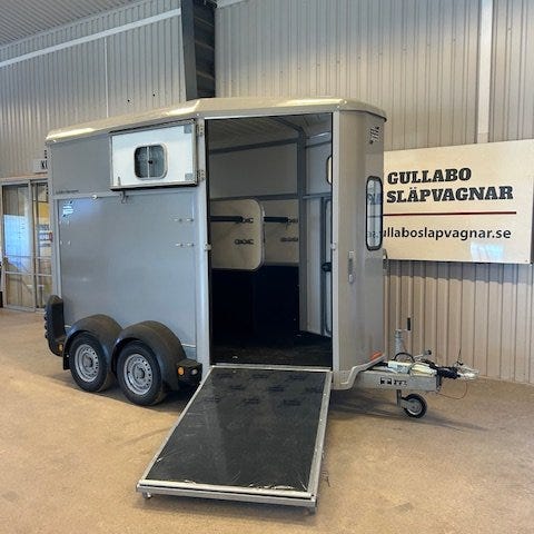 Mycket rymlig, stabil och ljus. Tvåhästarstransport årsmodell 2001. Fronturlastning och kombiramp.