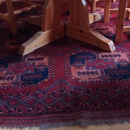 Väldigt fint bord o stolar. Hög kvalitet, stabilt och skandinavisk/allmogestil, troligen i furu eller gran, med en ganska rustik men välgjord känsla.