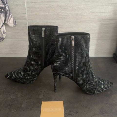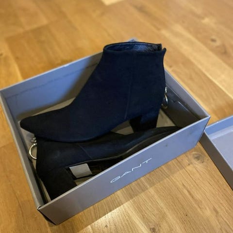 Säljer ett par Michael Kors Asha Bootie i mocka, storlek 40, med exklusiva strutsfjädrar som detalj en unik och lyxig touch som verkligen sticker ut. Skorna är varsamt använda men har vissa tecken på normal användning.
