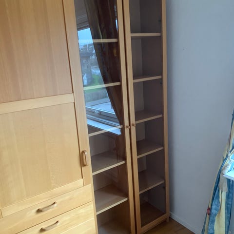 Vitrinskåp furu med stor potential för omlackering