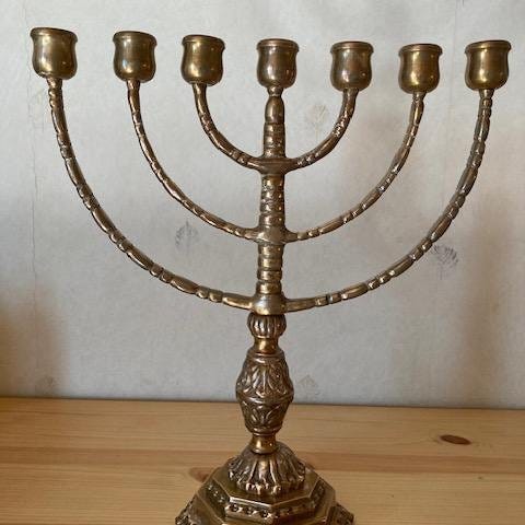 Fin sjuarmad malmljusstake med höjd 32 cm