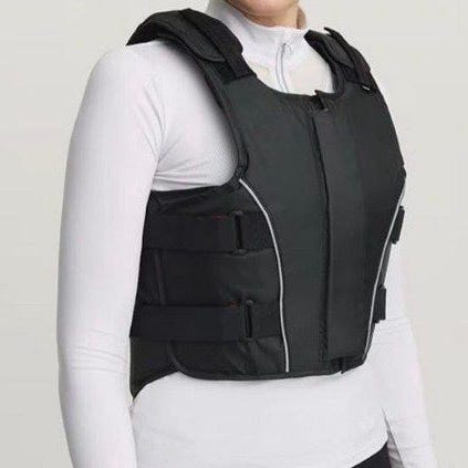 Ridväst svart för barn, strl M. Inga olyckor. Gott skick. Använd av smal, ganska kort pojke 10-11 år