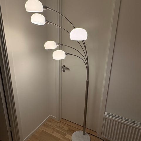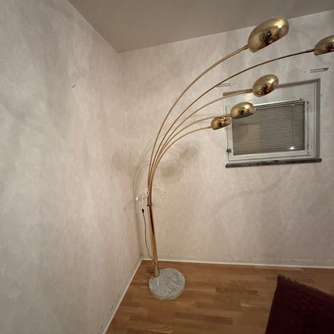 Golvlampa med fem armar I mässing, olika tändningsalternativ.
