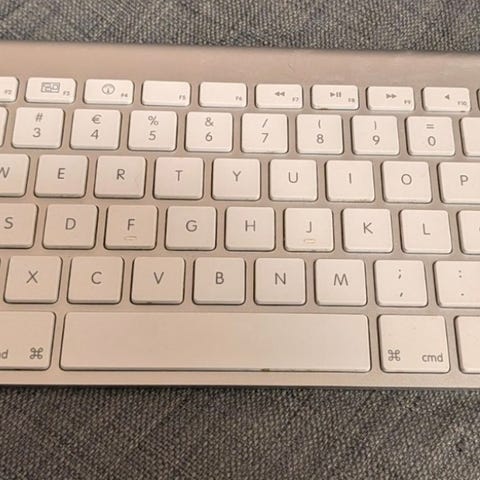 Apple trådlöst tangentbord - Magic Keyboard (modell från 2015) - i vitt. Tangentbordet är sparsamt använt.
