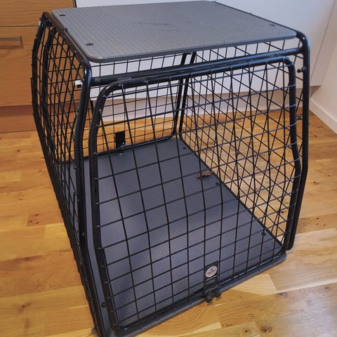 Hundbur Artflex rejäl bur väldigt lite använd köpt Juli 2025 nypris 4085:-, men är lite för trång för våran hund mått Bredd 675 Höjd 830 Djup 675 vi har haft den i en Ford Focus kombi