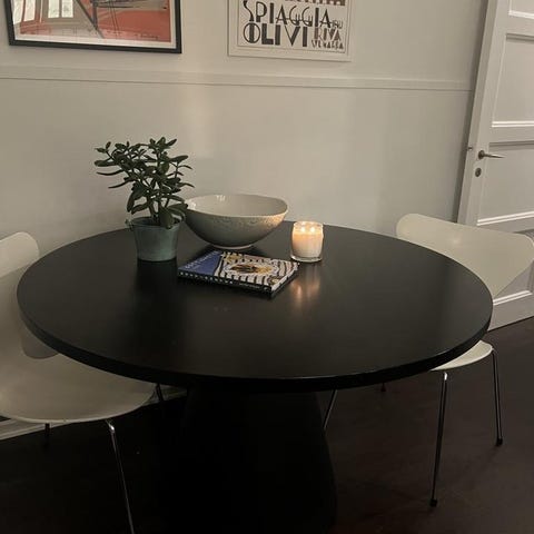 Bordet är 110 cm dm och efter inläggsskiva 150cm dm