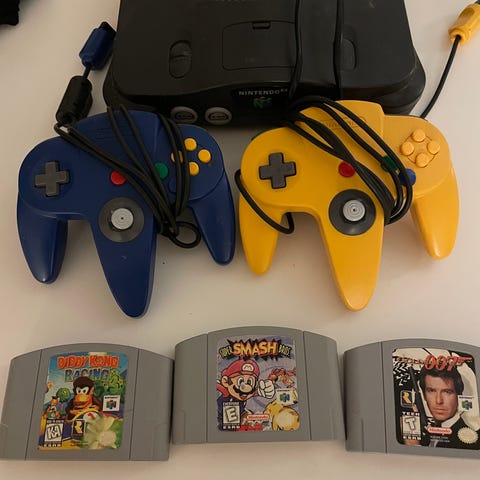 Nintendo 64 Excitebike 64 kartong samt james Bond för Nintendo 64 konsol.