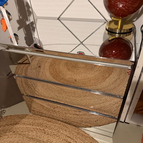 Säljer en malmbyrå med glasskiva. Finns att hämta i Bromma. Först till kvarn!