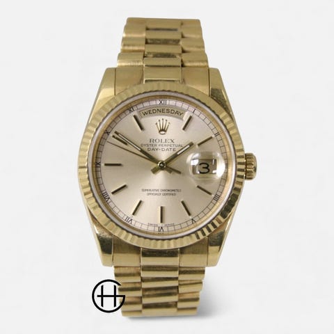 Säljer nu 1st Original Rolex Day-Date 36 i 18K Gult guld med blå urtavla.