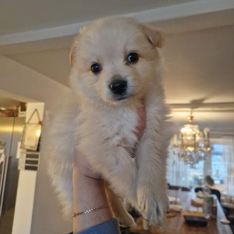 Nu är det bara denna kille kvar. Han är en social kille som är full av bus. Gillar hänga med på det mesta. Går lös på alla runder o skogen lyssnar för det mesta. Håller sig minst 7 timmar om nätterna. Uppvuxen på landet med kor, får, höns, kaniner och katter även stora hundar.