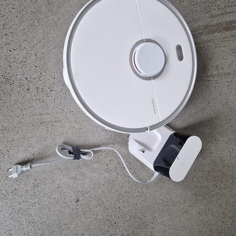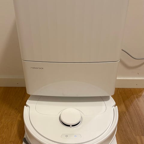 Ecovacs robotdammsugare med automatiskt tömningssystem. Produkten är vit och utrustad med borstar och sensorer för effektiv rengöring av golvytor. Finns även skurfunktion. Nypris 7900kr