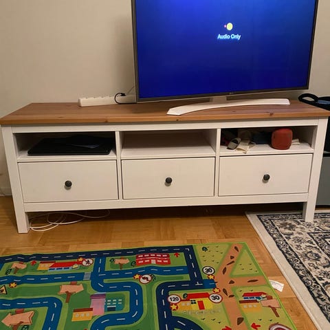 Säljer en TV-bänk i massiv ek av mycket hög kvalitet. Gedigen, stabil och tung möbel – inget IKEA.
