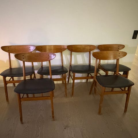 Set med 6 st stolar i dansk skandinavisk design. Retro vintage midcentury