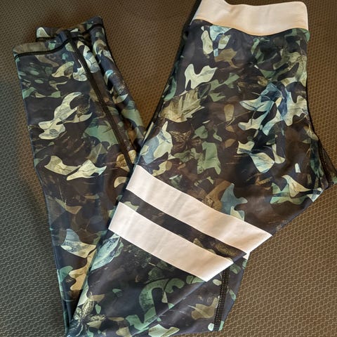 Blåa yoga leggins i storlek M. Material är polyester och elestan som är fuktavisande, stretchigt som är ett snabbtorkande tyg. Det är bubble butt push up fitness legging high waist scrunch tight.