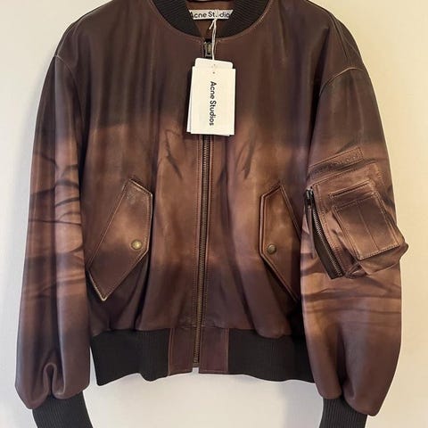 Riktigt snygg bombarjacka med snygga rynkade detaljer i armarna. Lite nopprig i muddar men det går att fixa till, inget jag orkar göra dock!