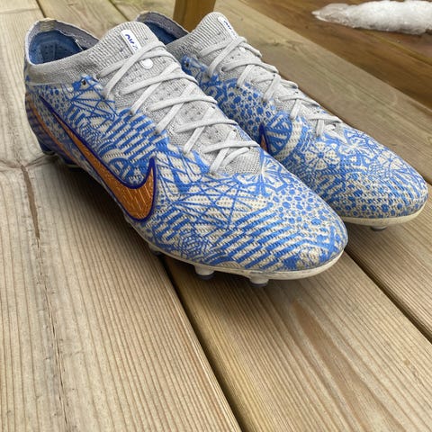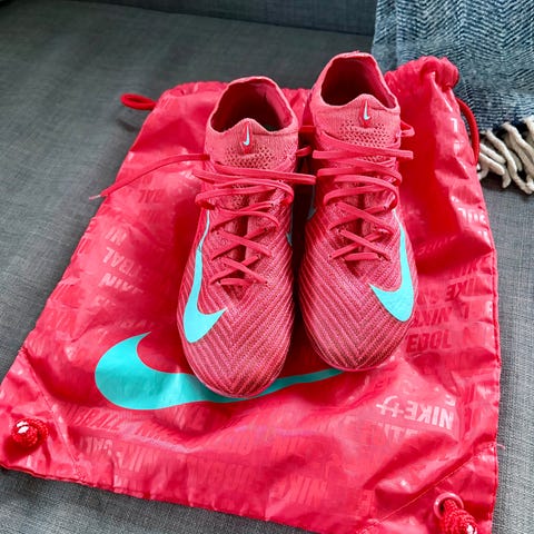 Nike Mercurial fotbollsskor i storlek 44, beige och svarta i färgen. Skorna är designade för fotboll och har dobbar för bättre grepp på planen. Helt nya. Dem är testade men aldrig tagit ut dem.