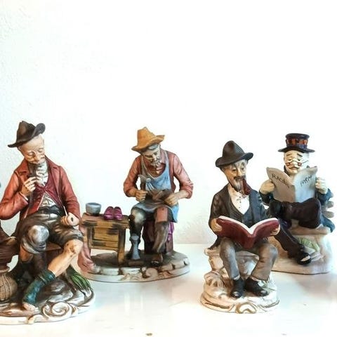 Figurin som föreställer ett barn med hatt som skjuter en barnvagn med en ekorre.