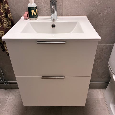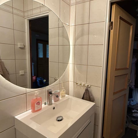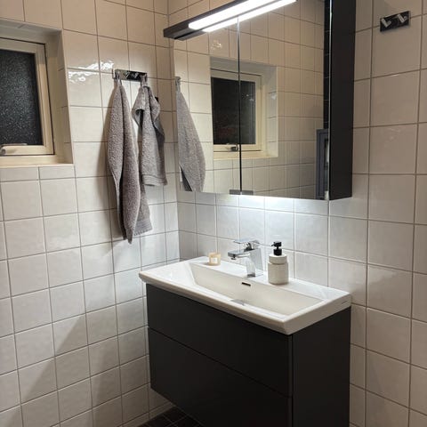 tvättställ med spegel och beröringsfri blandare