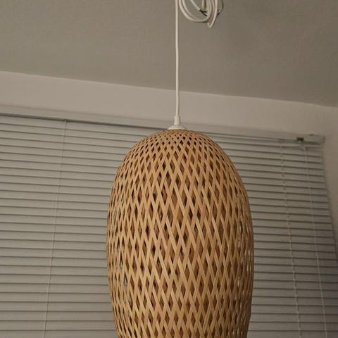 Handgjord taklampa i bambu från IKEA. Glödlampa ingår.