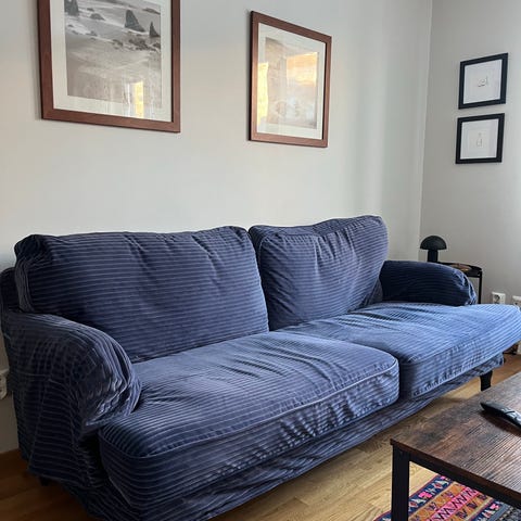 Generellt fint bruksskick. Mindre slitage finns på ena armstödet (se bild), men inget som påverkar funktion eller sittkomfort.