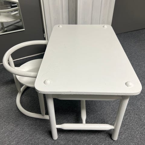 Säljer ett gulligt litet barnmöblemang som passar perfekt i lekrummet eller barnrummet. Setet består av ett runt bord och två matchande stolar i en fin rosa färg.