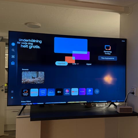 Samsung 65 tum 4K Ultra HD LED smart TV med tillhörande fjärrkontroll.