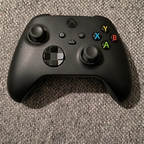 Xbox Xbox Series X/S trådlös handkontroll i svart färg. Handkontrollen är kompatibel med Xbox Series X och S konsoler och erbjuder trådlös anslutning för spelupplevelse utan sladdar.