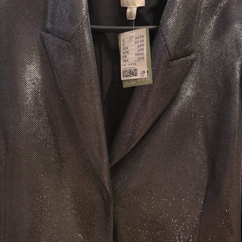 Brandtex kavaj i storlek M/38C, färg grå, tillverkad i ull och polyester. Plagget har lång ärm och knäppning fram. Insidan är fodrad med polyester. Passar för kvinnor.