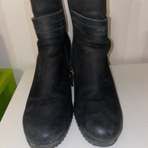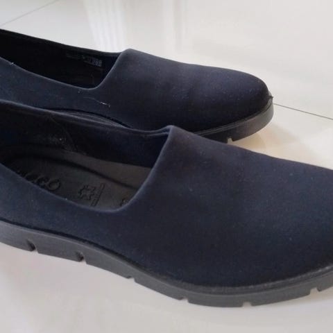 ECCO Loafers och seglarskor i svart färg, storlek 38. Skorna har en klack och är tillverkade i läder med dekorativa sömmar och spänne fram. Passar för dam.