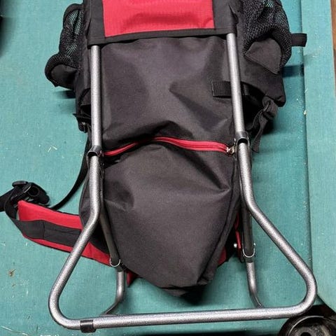 Bärstolen har ett stöd på baksidan, så att den står stadigt när barnet ska sättas i eller lyftas ur.