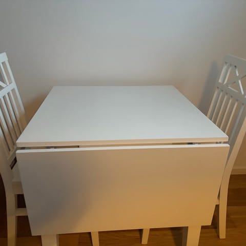 Bordet har klaffar som gör det flexibelt i storlek och passar lika bra i mindre utrymmen som för stora middagar.