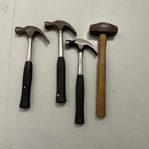 Hammare med metallhuvud och svart grepp. Använd för spikning och andra allmänna bygg- och reparationsarbeten