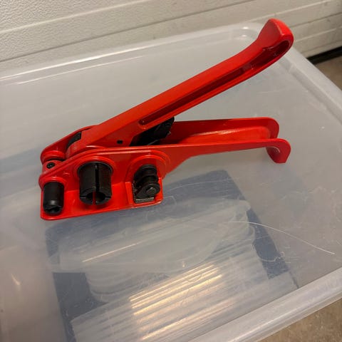 Ten Tools Måttband med en längd på 8 meter. Färgen är röd och svart. Måttbandet är metrisk och lämpligt för mätning i olika sammanhang.