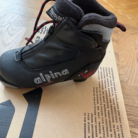 Helt nya pjäxor från Alpina som bara har använts en gång på långfärdsskridskor.