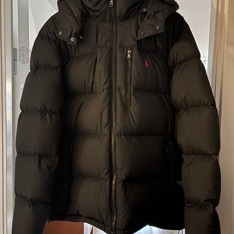 Ralph Lauren Polo jacka i svart färg, storlek XL. Jackan är tillverkad av dun och är avsedd för utomhusbruk. Designad för män och erbjuder värme och komfort.