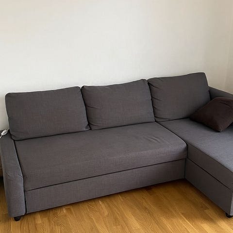 Äldre bäddsoffa. Enstaka märke i tyget.