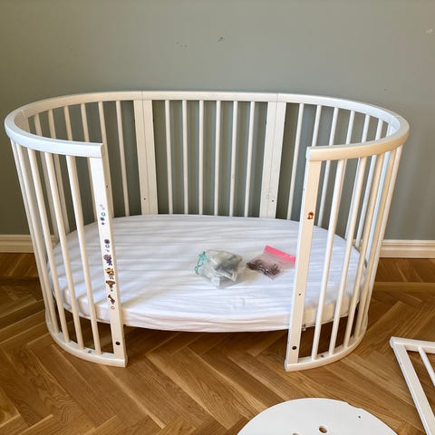 Ingår även delar till miniläge. Madrass till mini saknas dock, men finns att köpa separat av Stokkes återförsäljare.