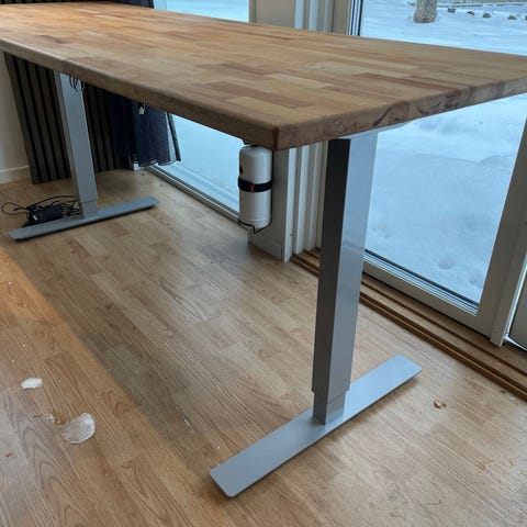 Säljer vårt höj- och sänkbara skrivbord från IKEA. Bordsskivan på bild har måtten