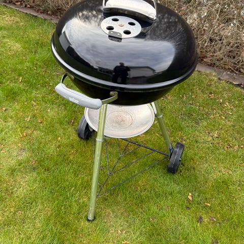 Weber klotgrill, 57 cm i diameter, med sideboard och överdrag (överdraget är slitet men fungerar). Grillen har stått under tak, ej använd de senaste åren, men i okej skick.