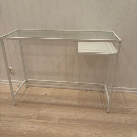IKEA VITTSJÖ skrivbord med bordsskiva i glas och ram i metall. Passar för användning som arbetsplats eller skrivbord i hemmiljö eller kontor.