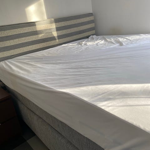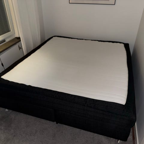 Säng 180cm x 200cm Mio Bedtime i fint skick med korta ben & bäddmadrass. Sänggavel ingår Inte.