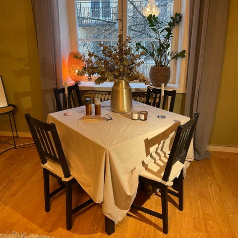 Matgrupp i solid vitlaserad björk från IKEA (Norråker serien).