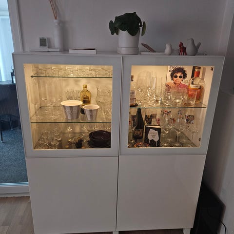 IKEA BESTÅ bokhylla/vitrinskåp – vit Lappviken & glasdörrar