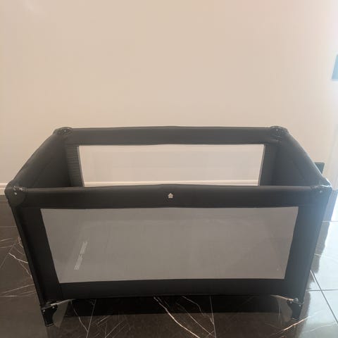 Resesäng , färg svart, inköpt år 2020 för 2 159kr (nypris nu är 2 629kr). Använd endast ett fåtal gånger då barn hellre sovit bredvid än i separat säng. Underlakan ingår om man vill (se bild).