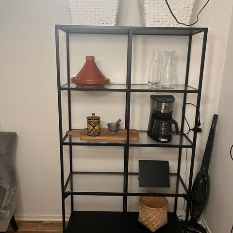 Rund hylla 60 cm i diameter 13 cm djup. För att hängas på vägg. Metall. Troligen köpt på MIO för några år sedan. Avhämtning, Falköping, Skövde, Alingsås.