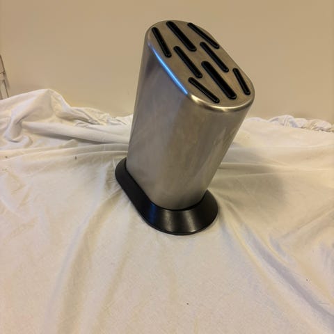 Global knivställ tillverkat i rostfritt stål. Designad för att förvara knivar på ett säkert och organiserat sätt. Har en stabil bas för att stå stadigt på köksbänken.