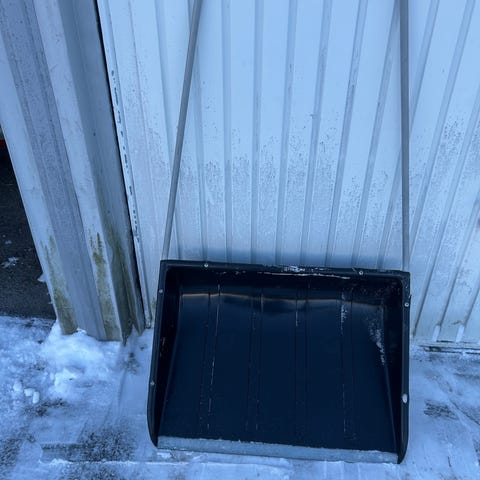 Lillfilingan snöskyffel tillverkad i galvaniserat material. Skyffeln har en bred och djup skopa med ett handtag för enkel användning vid snöröjning.