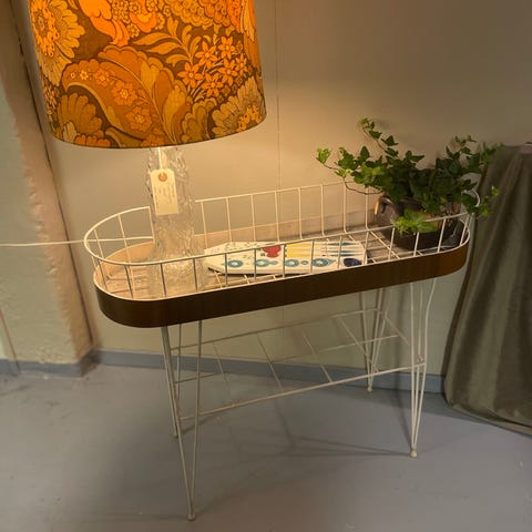 Retro Blombord i teak/svart metall i Stringmodell vintage, 50/60-tal.