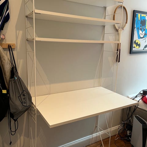Vit hylla/skrivbord från Alice and fox. Inköpt hösten 2025 från Jollyroom för 1599kr. Jättefin möbel som passar alla rum. Säljes nedmonterad.